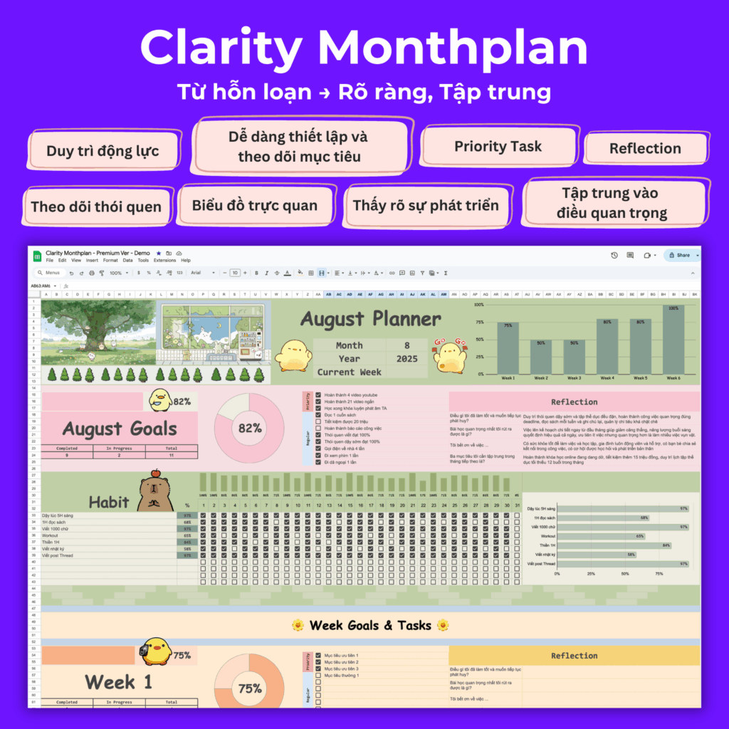 Một hệ thống đơn giản nhưng hiệu quả, giúp bạn đặt mục tiêu, duy trì thói quen và chiêm nghiệm đều đặn – tất cả trong một nơi duy nhất.